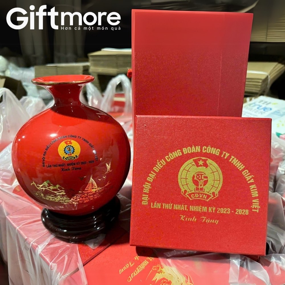 - Phân khúc cao cấp (cho cột mốc 5, 10, 20 năm): Ưu tiên các sản phẩm mang tính lưu niệm và vinh danh như kỷ niệm chương pha lê, huy hiệu cài áo mạ vàng hoặc các vật phẩm trưng bày nghệ thuật như tranh gốm sứ, bình hút lộc, đĩa cảnh.