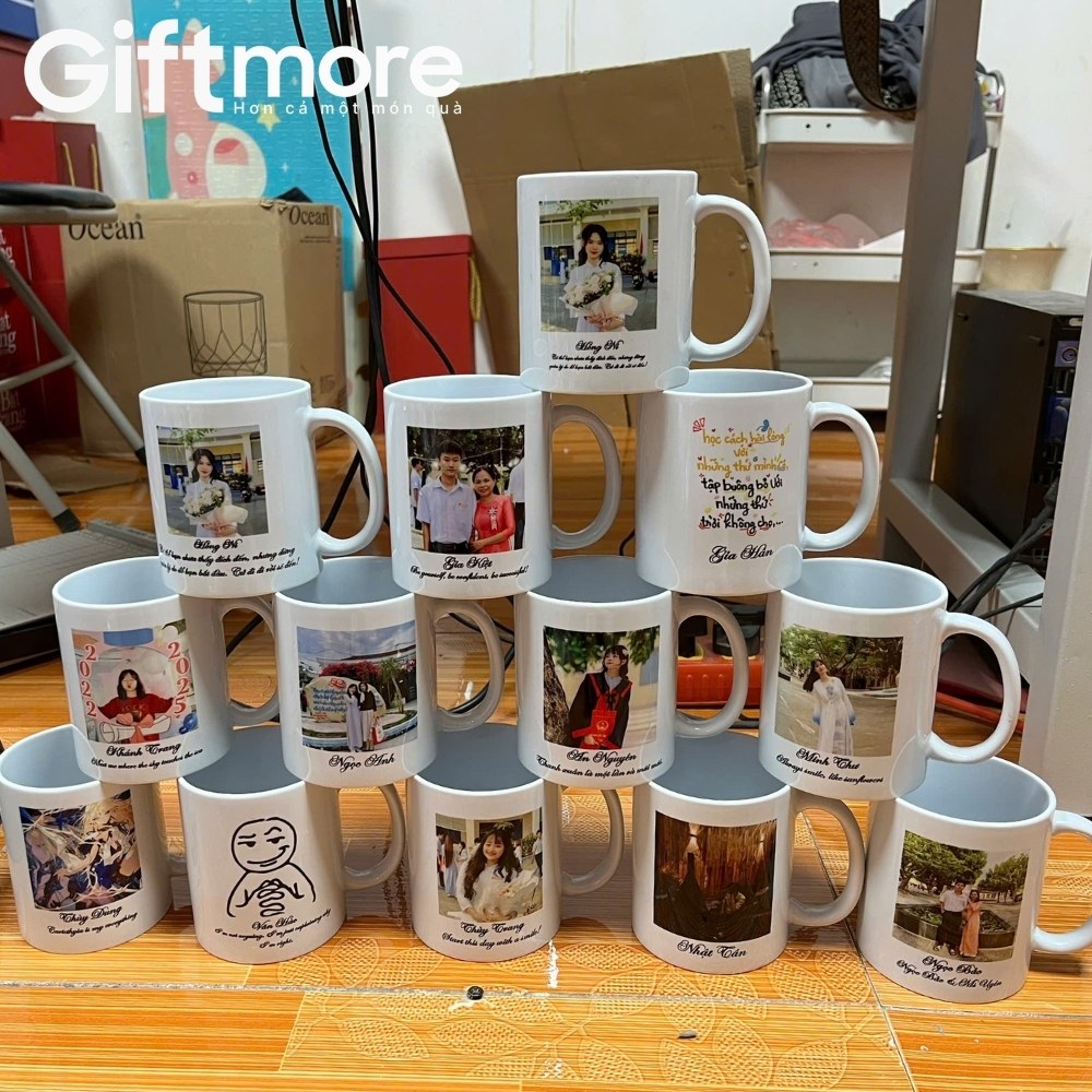 Điểm đặc biệt là bạn có thể in ảnh tập thể lớp lên thân cốc. Với công nghệ in nung nhiệt độ cao, hình ảnh, logo trường hay niên khóa sẽ bền màu, không bong tróc kể cả khi sử dụng và cọ rửa thường xuyên.